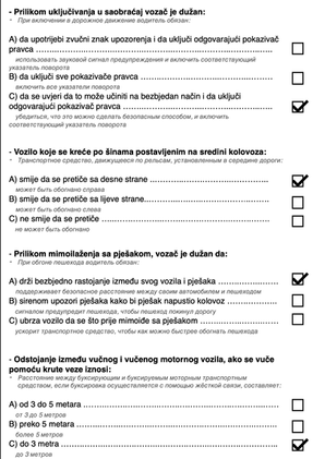 Билеты ПДД (правил дорожного движения) на черногорском языке с переводом на русский (пример см.ниже)